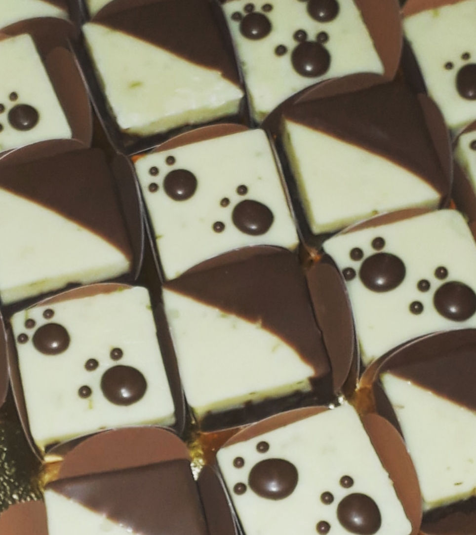 FUDGE - Doces finos feitos com chocolates meio amargo, nozes e conhaque, chocolate branco com um gostinho leve de laranja.